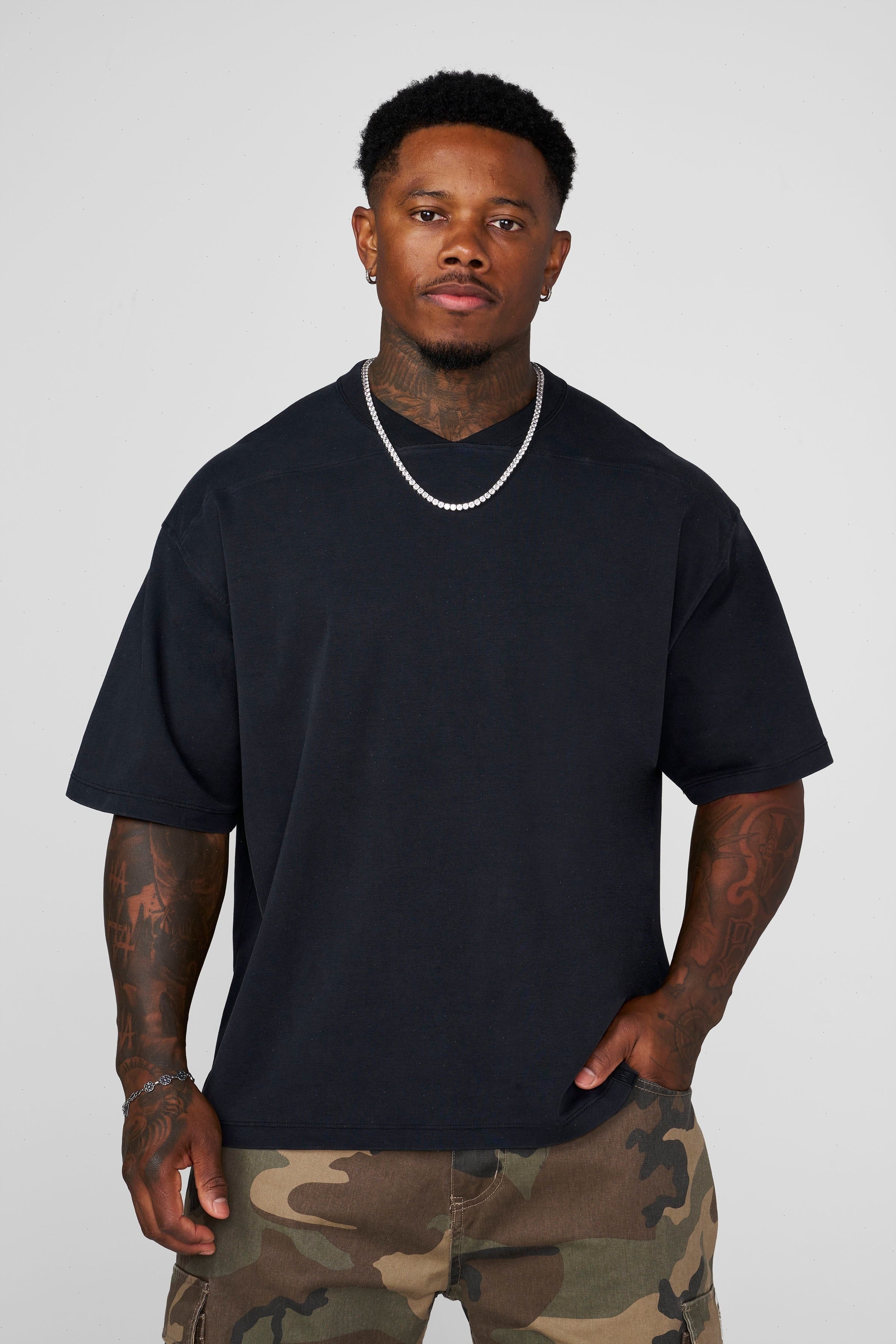 DESIGN: A premium everyday tee made from dense, ultra-soft interlock cotton for a smooth, elevated hand-feel. Designed with a relaxed silhouette, dropped shoulders, and a clean V-neckline that sits naturally without stretching out. The fabric has a structured drape that keeps its shape while still feeling breathable and comfortable for all-day wear. Finished with minimal branding and a subtle hem tag for a clean, modern look.