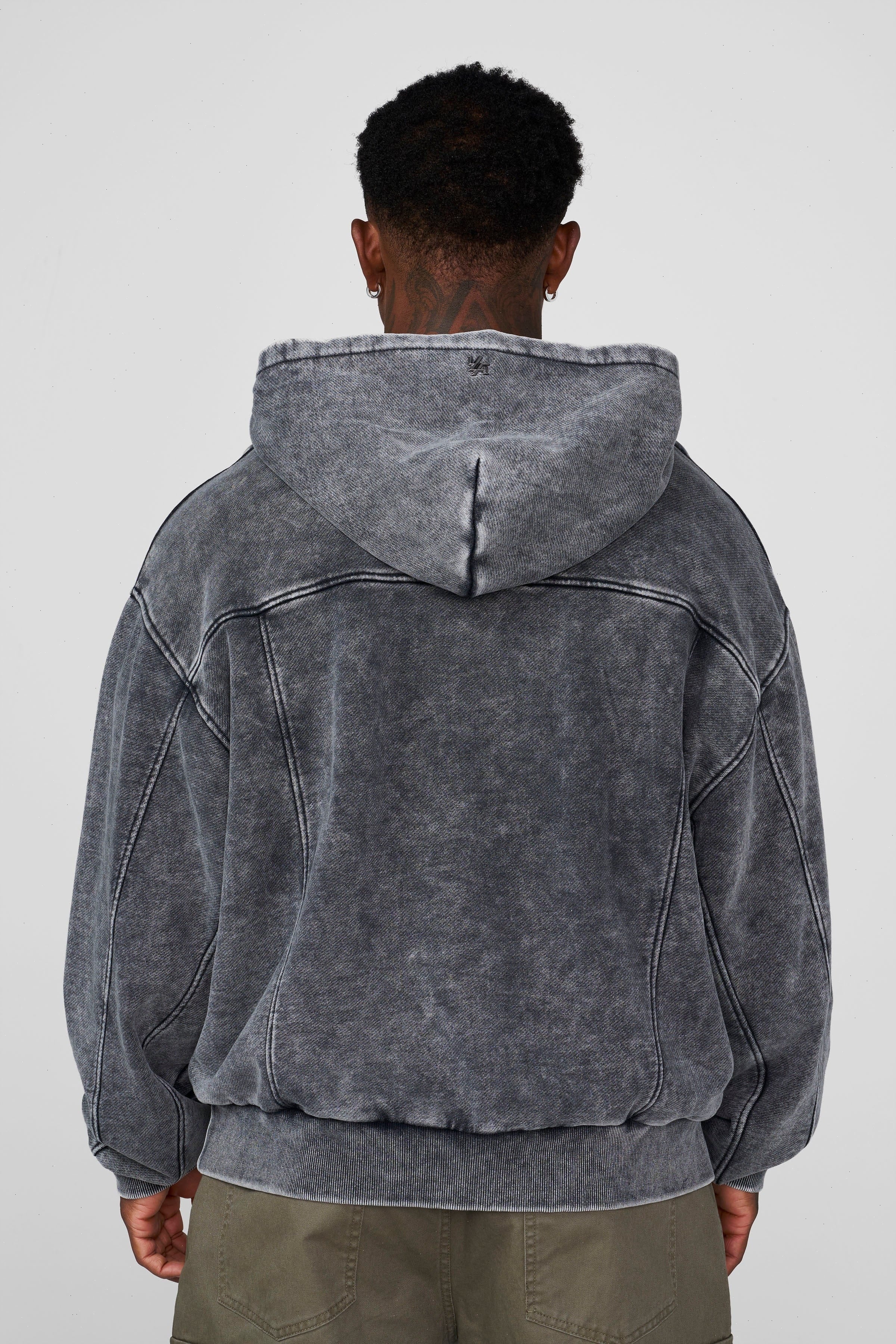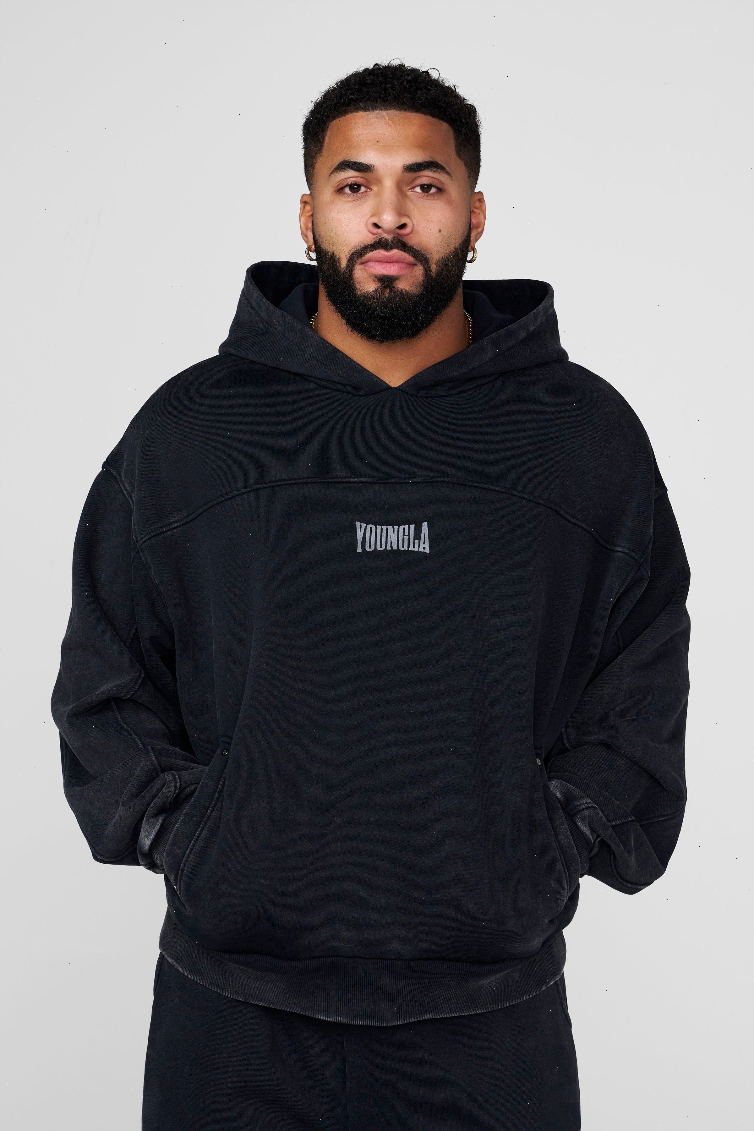 DESIGN: A heavyweight fleece hoodie built with oversized comfort and signature cross-panel detailing. Designed with curved seam lines running across the chest, sleeves, and back to create a structured, dimensional look. The mineral-washed finish gives each hoodie a vintage, worn-in tone while keeping the fabric soft and plush on the inside. Features a roomy hood, ribbed cuffs, and a deep kangaroo pocket for everyday wear. Minimal front branding keeps the focus on the silhouette and the wash.