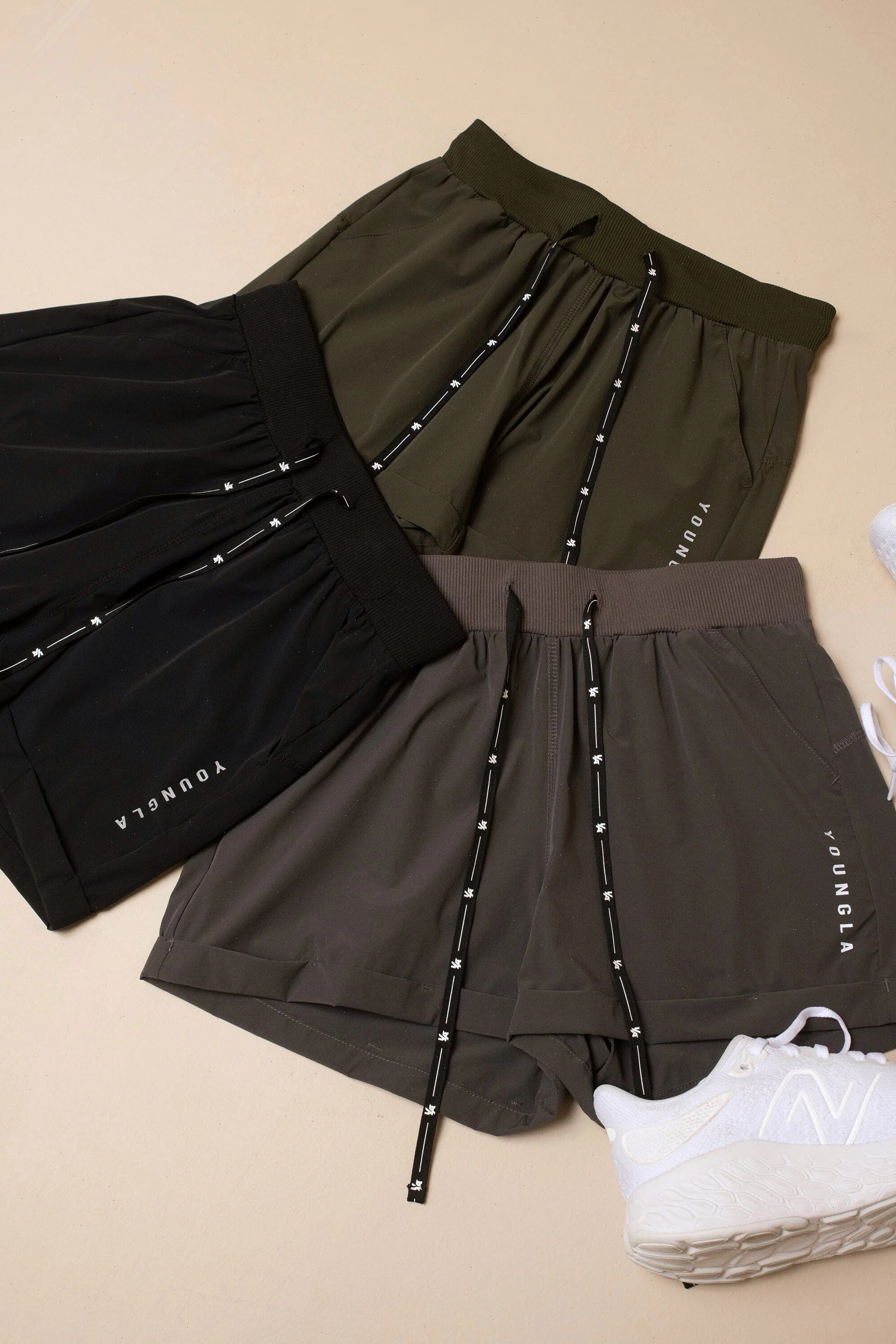 DESIGN: These running shorts are made of a light breathable fabric and they come with deep pockets that will fit all of your running necessities. These running shorts have a great supportive and comfortable waistband with youngla logo drawstrings. Perfect running shorts to add to your closet they come in black, dary grey, and forest green.