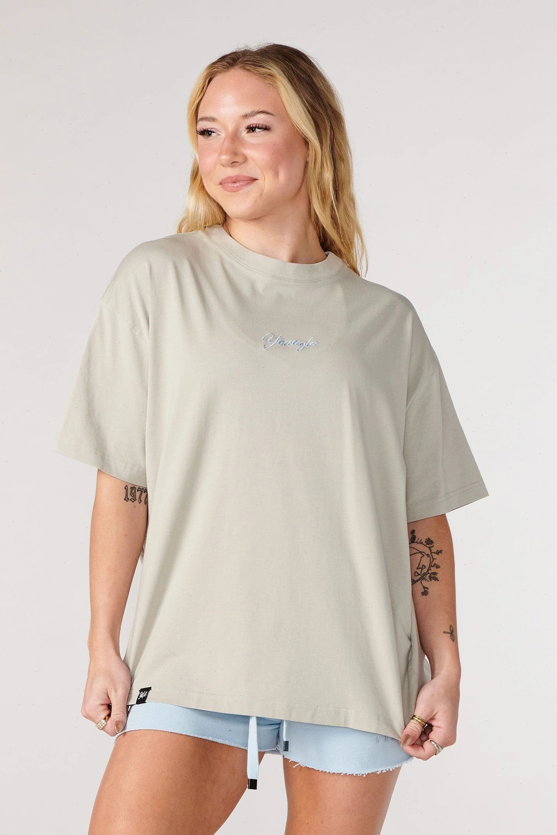 DESIGN: This is a short sleeve version of our infamous W416 tops. They have robbed detailing across the sides of the shirt. The Retro short sleeve is made with a soft fabric that have a distressed wash over. There is a cursive YoungLA embroidered logo on the chest.